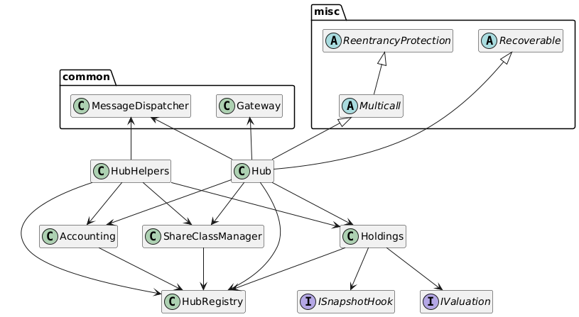 The Hub module in the Centrifuge Protocol serves as the core orchestration layer for decentralized pool management. It acts as the central controller that connects various components of a pool’s lifecycle - from registration and accounting to share class configuration and metadata handling.
