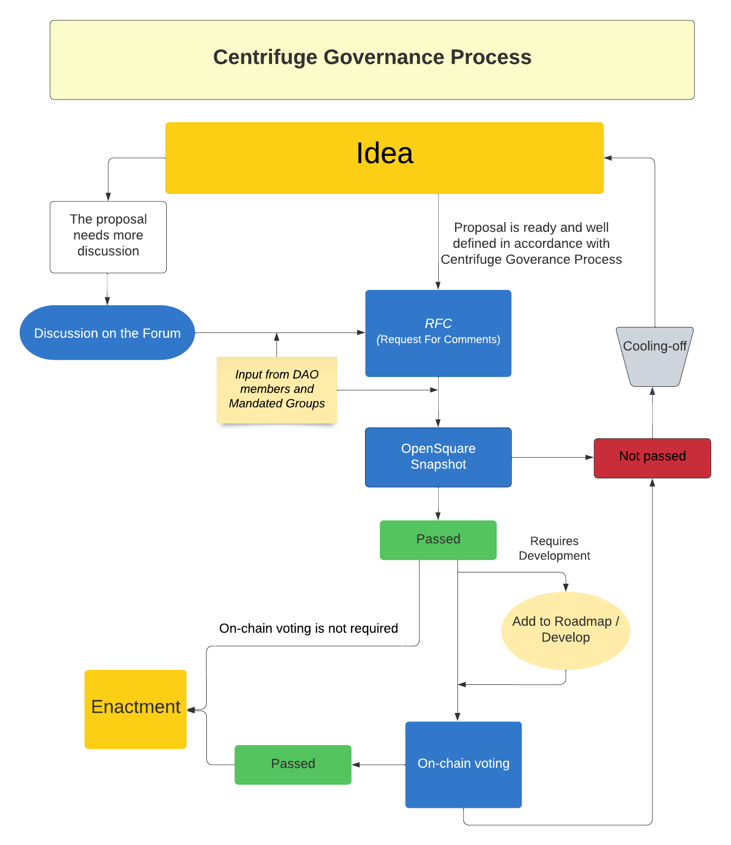 Some of these proposals have different governance processes, but they all start with a post on the Forum. All CPs (Centrifuge Proposals) must also be submitted to the Centrifuge Proposals Repository on Github.