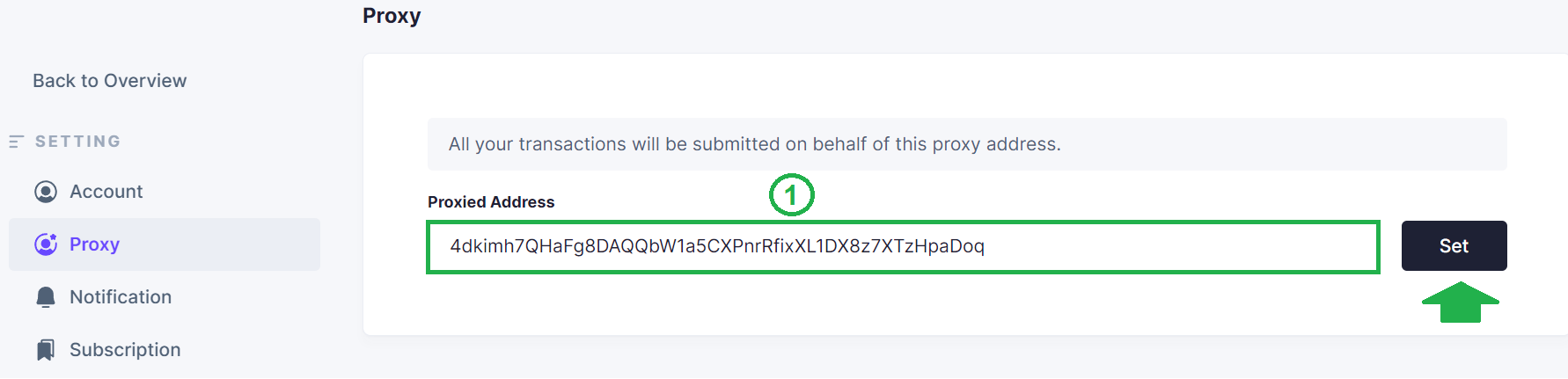 Paste the address of the cold wallet (i.e. the wallet that created the Proxy).