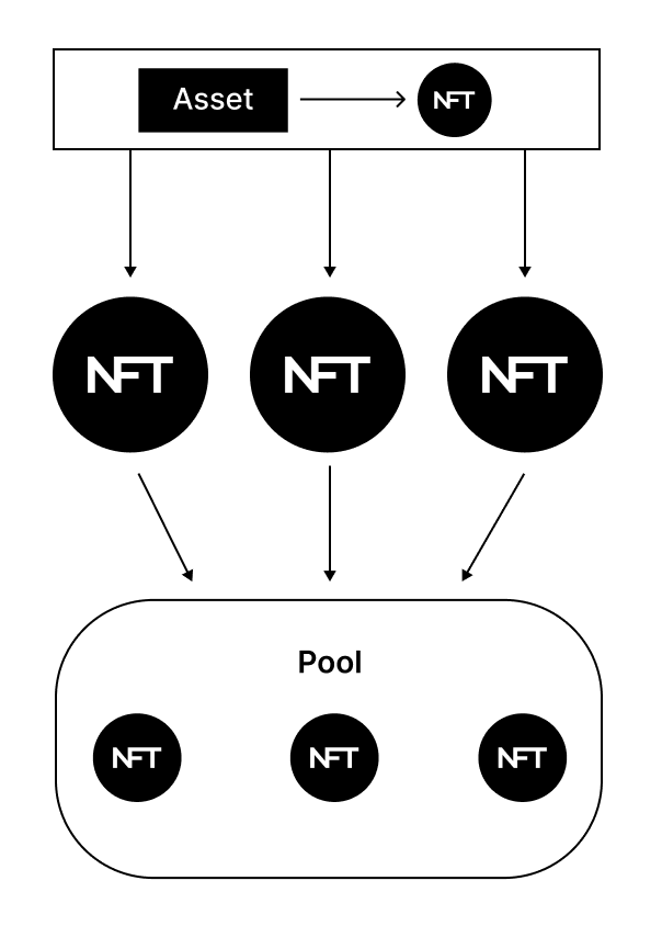 By nature, real-world assets are often illiquid and can have maturities up to several years. This makes investing in individual assets extremely difficult. A way to solve this is by pooling multiple assets together, and allowing investors to provide financing for this pool instead of each asset individually. This is called a securitization and is a well established concept in traditional financial markets.